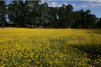 Late spring rains brought on an abundant growth of yellow English plantain in a field where